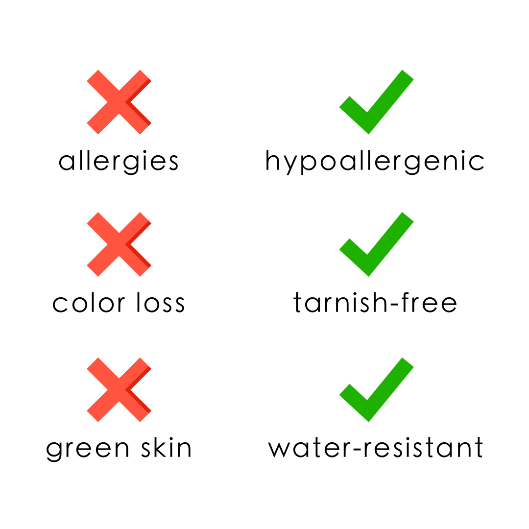 - Rivestimento avanzato che mantiene i tuoi gioielli belli anche a contatto con l’acqua.